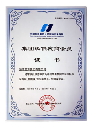 浙江三方集團(tuán)有限公司經(jīng)中國(guó)華電集團(tuán)公司招標(biāo)與采購(gòu)網(wǎng)審核批準(zhǔn)成為中國(guó)華電集團(tuán)公司招標(biāo)與采購(gòu)網(wǎng)供應(yīng)商會(huì)員。